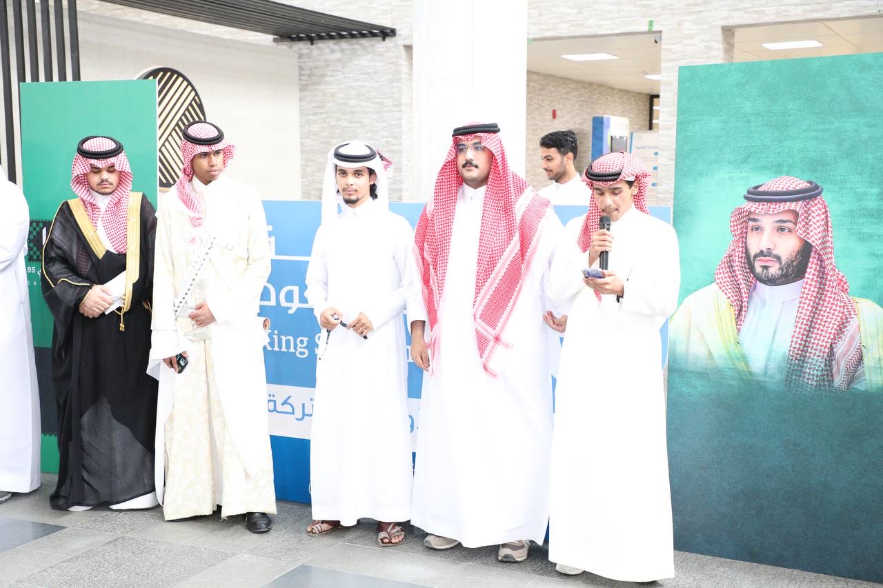 واستهل الحفل بالسلام الملكي، ثم أُلقيت قصيدة شعرية وطنية عبرت عن الاعتزاز بالوطن وقيادته، أعقبها كلمة للطلاب عبّروا فيها عن فخرهم وولائهم. كما ألقى سعادة العميد كلمة بهذه المناسبة الوطنية الغالية، مؤكدًا على ما يمثله اليوم الوطني من معانٍ راسخة في نفوس أبناء الوطن .